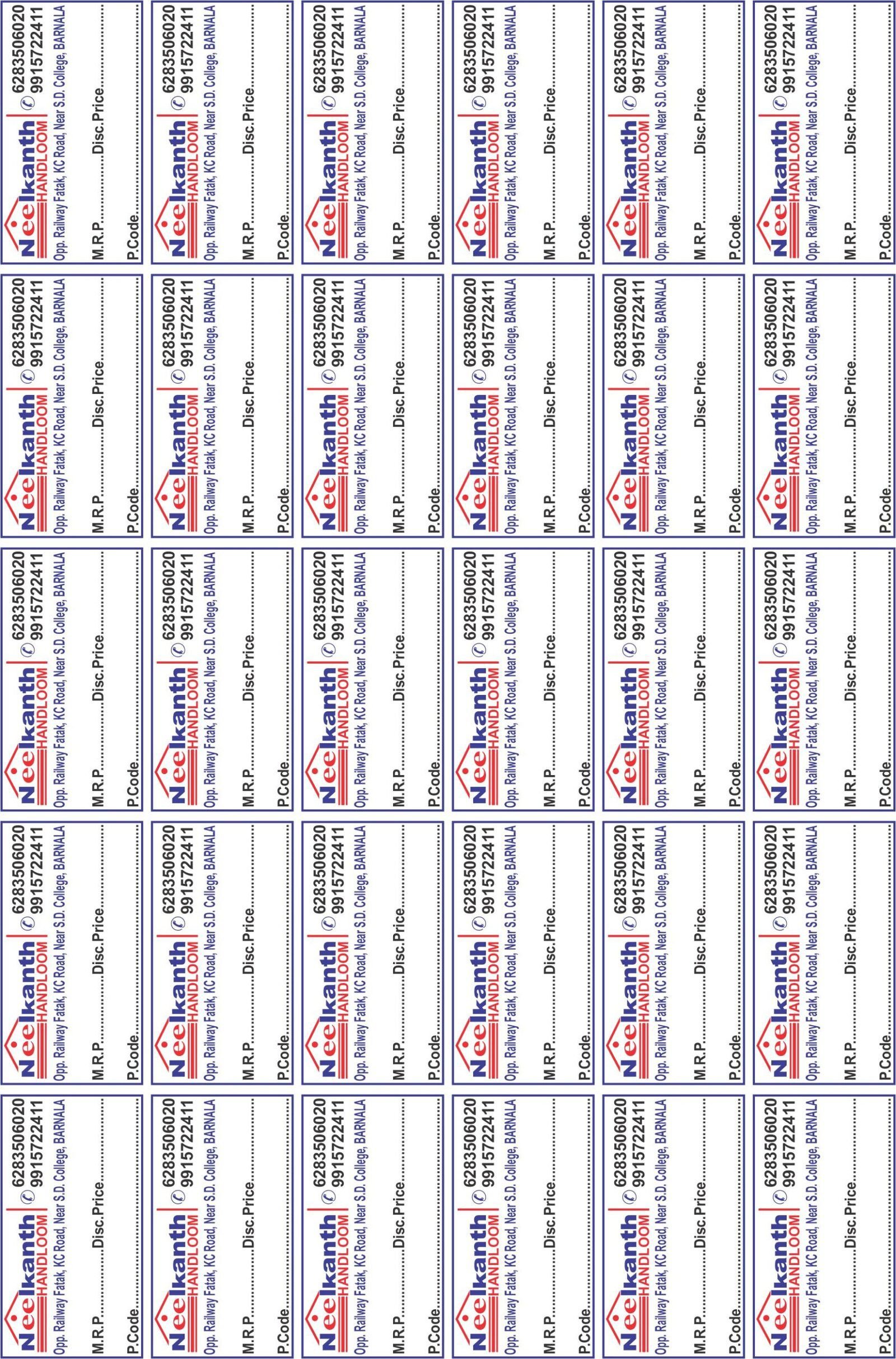 eep your handloom products well-organized and easy to manage with our custom stickers designed for pricing and coding. Perfect for writing rates, product codes, or fabric details, these stickers help you label your handwoven textiles clearly and professionally.